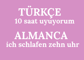 ich schlafen zehn uhr gehe saat 10'da yatıyorum ve git