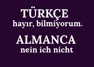 nein ich nicht hayır, bilmiyorum.
