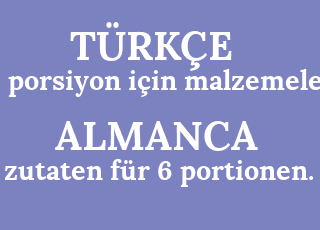 zutaten für 6 portionen. 6 porsiyon için malzemeler.