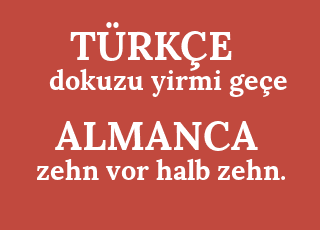 zehn vor halb zehn. dokuzu yirmi geçe