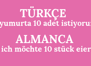 içh möchte 10 stück eier bitte 10 parça yumurta istiyorum lütfen